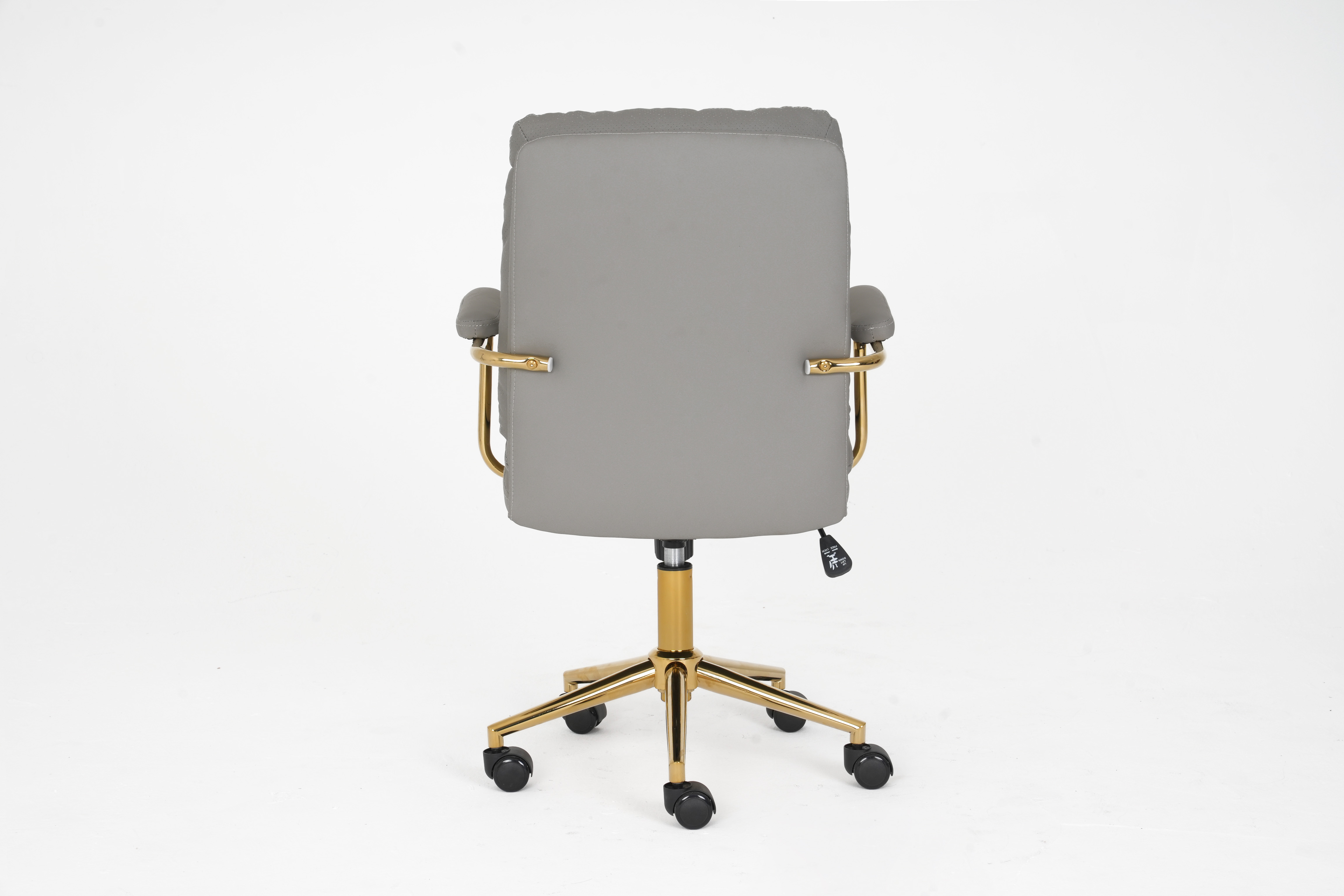 Los reposabrazos y base de cinco brazos metálicos dorados pulidos presentan líneas elegantes y fluidas, creando un llamativo contraste bicolor que impregna cualquier espacio de un encanto sofisticado y de alta gama.
